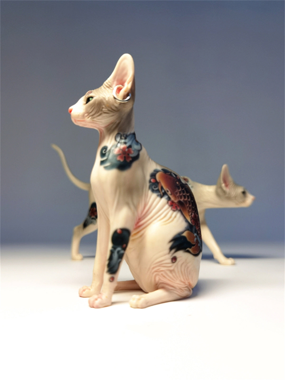 1 6 Scale Simulation Jxk Tattoo Version Of Sphinx Hairless Cat Simulation Animal Model Static Indoor Decorations Display Play Action Figures Aliexpress
